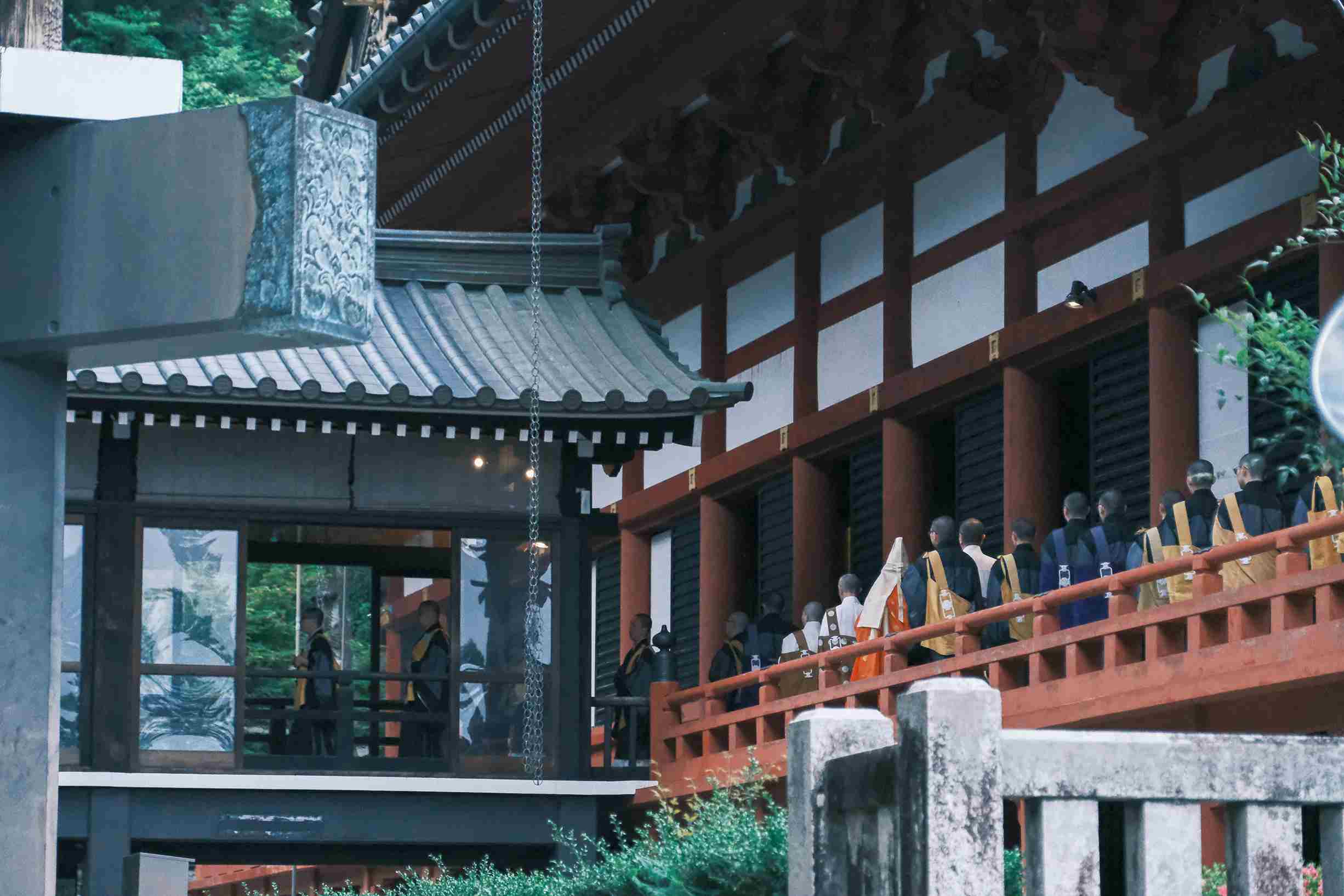 Begin your day in the main hall of Kuon-ji Temple, joining the monks for their solemn morning service. Experience the powerful resonance of chanting voices and drums echoing through the sacred space as dawn breaks.